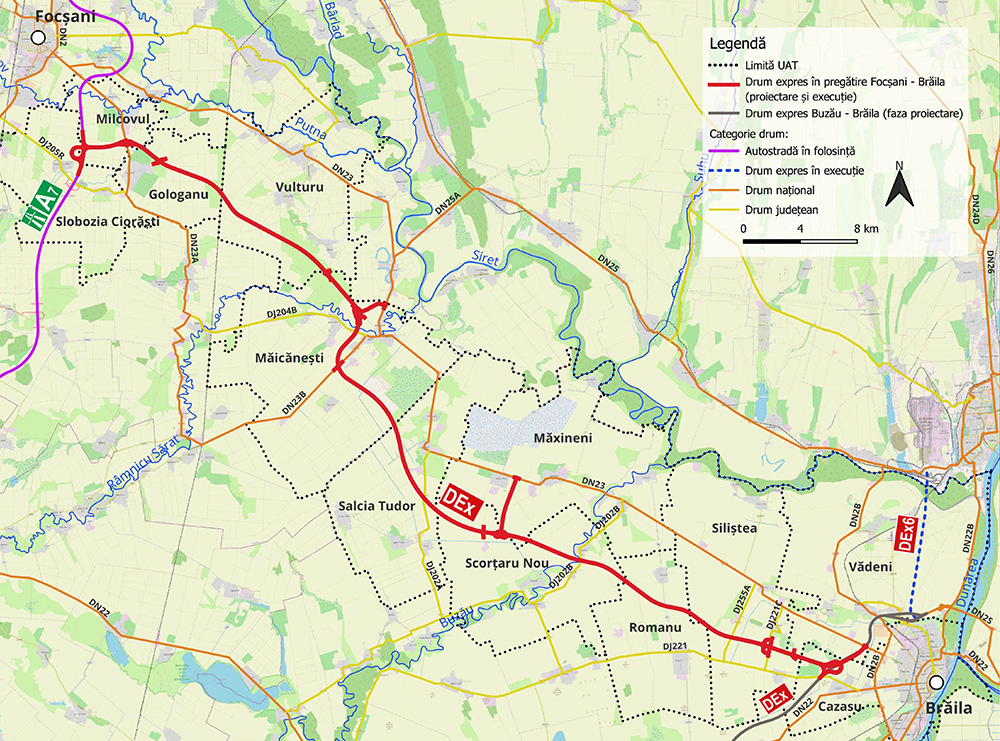Un alt contract semnat miercuri de CNIR cu UMB vizează construirea drumului expres Focșani-Brăila (73,5 km). Pentru cel mai lung tronson de drum de mare viteză care va fi construit în cadrul unui singur contract avem un termen de realizare de 42 de luni și o valoare de 4,29 miliarde lei.