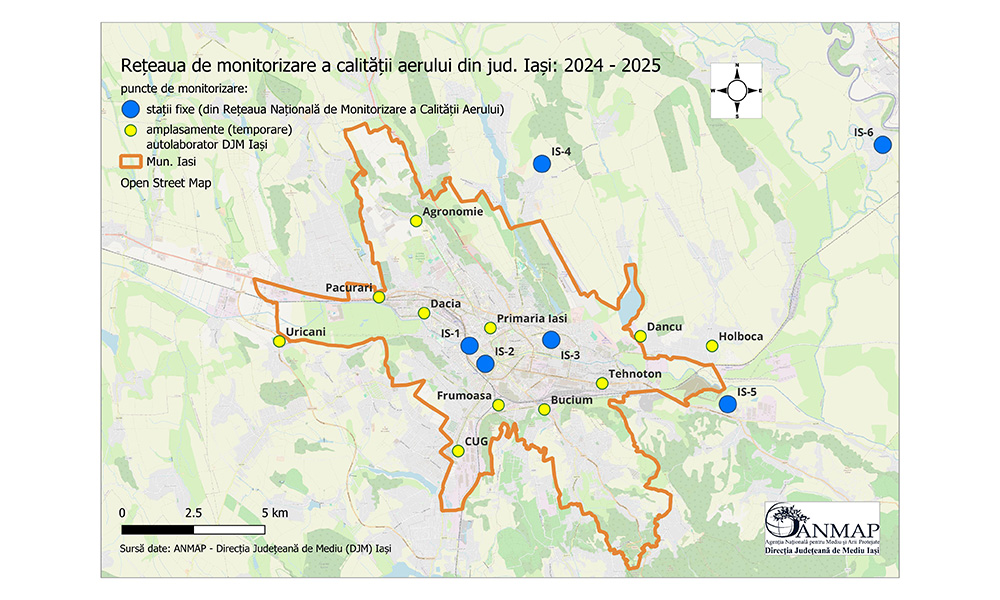 Zonele monitorizate sunt stabilite în colaborare cu primăriile și Comisariatul Județean al Gărzii Naționale de Mediu. Rapoartele detaliate și rezultatele măsurătorilor pot fi consultate pe site-ul Direcției Județene de Mediu Iași sau pe platforma națională.