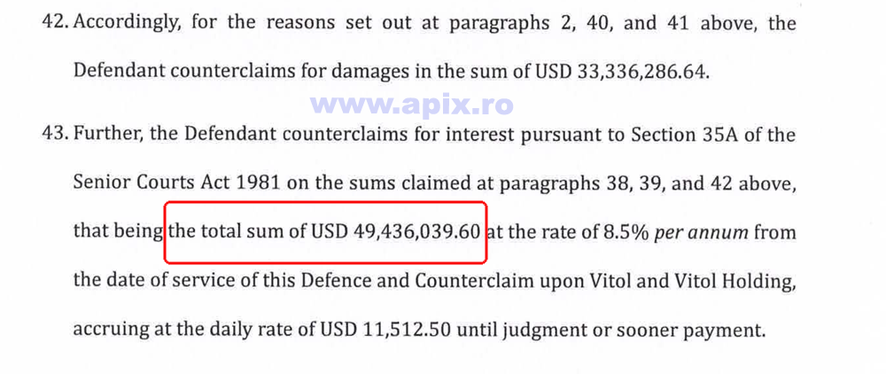 În același timp, în cererea reconvențională depusă de avocații Primăriei Iași se arată că municipalitatea ar avea dreptul la restituirea plăților efectuate către Vitol, inclusiv în ceea ce privește plata avansului la semnarea acordului. În total, suma se ridică la aproape 50 milioane euro.