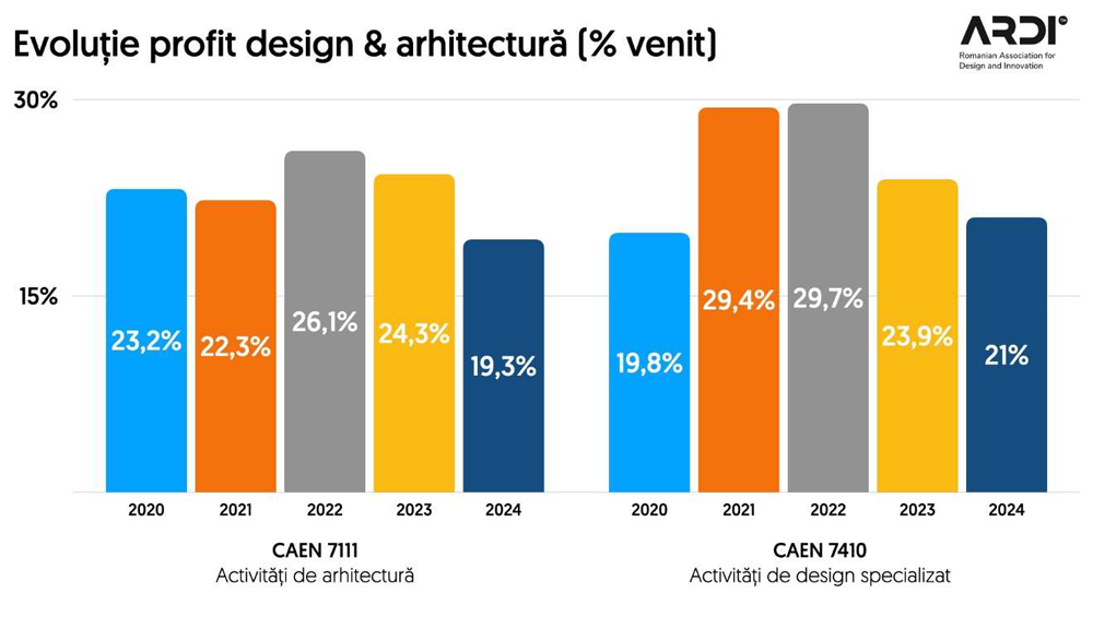 - Randament al capitalului investit: 33% în arhitectură, 46% în design.