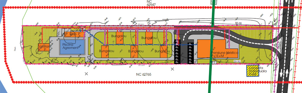 Potrivit documentației analizate de APIX.ro, inițiativa presupune introducerea în intravilan a unei suprafețe de teren (6.400 mp) și reglementarea acesteia pentru funcțiuni turistice. Proiectul include o clădire principală de tip pensiune, completată de mai multe bungalouri amplasate separat, într-un concept orientat spre turism de relaxare și sejururi scurte.