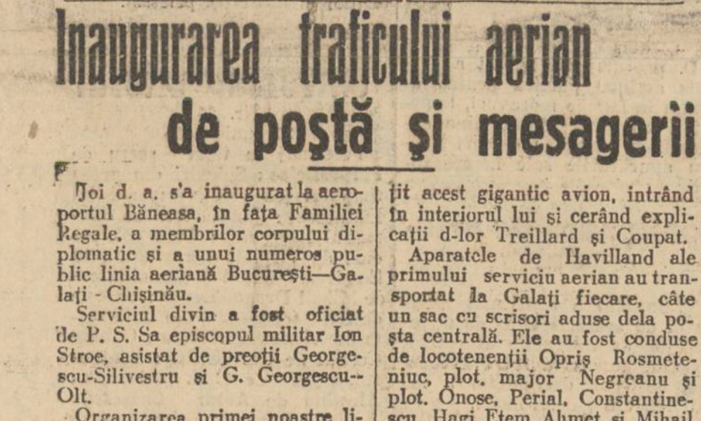 - Avioanele transportau saci de corespondență și ziare, iar printre pasageri s-au numărat și reprezentanți ai trei instituții de presă: „Dimineața”, „Universul” și„Îndreptarea”.