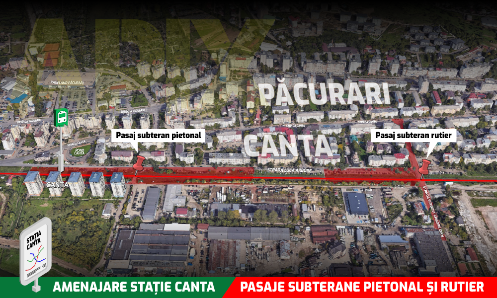 Pasajul rutier subteran din apropierea stației Canta este amplasat pe strada Sergent Grigore Ioan care leagă străzile Canta și Tabacului. Pasajul va înlocui trecerea la nivel existentă (BJATM) și va avea o lățime interioară de 9 metri, cu o bandă de circulație pe sens. „Rampele de acces vor avea o pantă de 8%, facilitând legătura între nivelul străzilor și cota pasajului”, conform studiului tehnic.