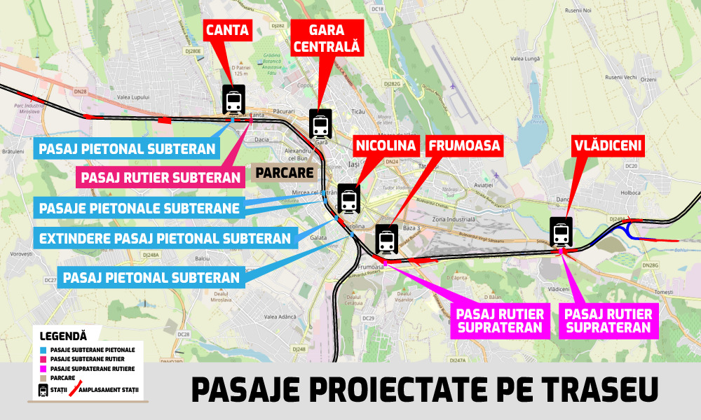 pasaje proiectate pe traseul trenului metropolitan iasi